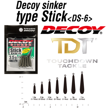 DECOY DS-6 STICK SINKER ตะกั่วถ่วงเหยื่อดรอปชอต ญี่ปุ่นแท้ 100%